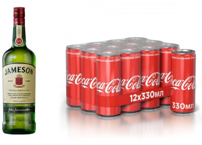 Ціна на набір Віскі Кола Jameson 1 л 40% + Coca Cola 0.33 х 12 шт в місті Черкаси