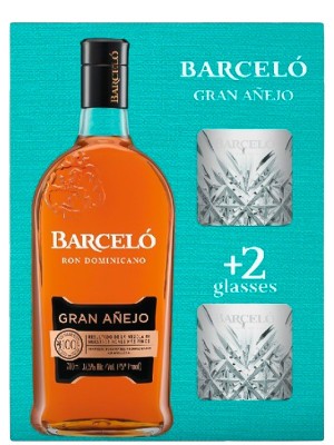 Ціна на ром Гран Аньехо, Барсело / Gran Anejo, Barcelo, 6 років, 37.5%, 0.7л, в подарунковій коробці + 2 бокали в місті Запоріжжя