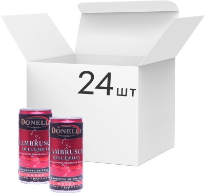 Ціна на упаковка ігристого вина Donelli Lambrusco Emilia Red червоне напівсолодке 0.2 л 7.5% х 24 шт. в місті Житомир